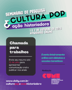 O Seminário de Pesquisa Cultura Pop & Ação Historiadora (1 e 2 de outubro de 2025, inteiramente online) propõe um […]